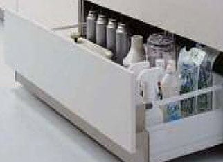 前板の下部はアルミ製なので衝撃や薬品に強く、床の掃除も気兼ねなくできます。